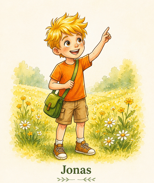 Jonas ist ein neugieriger und freundlicher Junge mit einem großen Herzen. Er liebt die Natur, entdeckt gerne neue Dinge und erlebt zusammen mit Bluey viele spannende Abenteuer in der Kieselei.